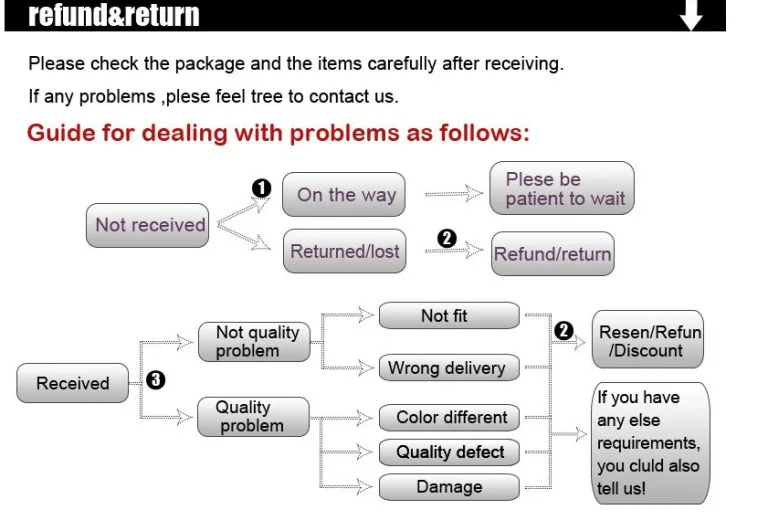 • If you received the wrong item you can request a refund or a reshipment.