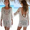 2018 New Beach Cover Up Crochet White Swimwear Dress Bathing Suit Sexy Hollow Out Backless Cover Ups Beach Wears Summer Dress