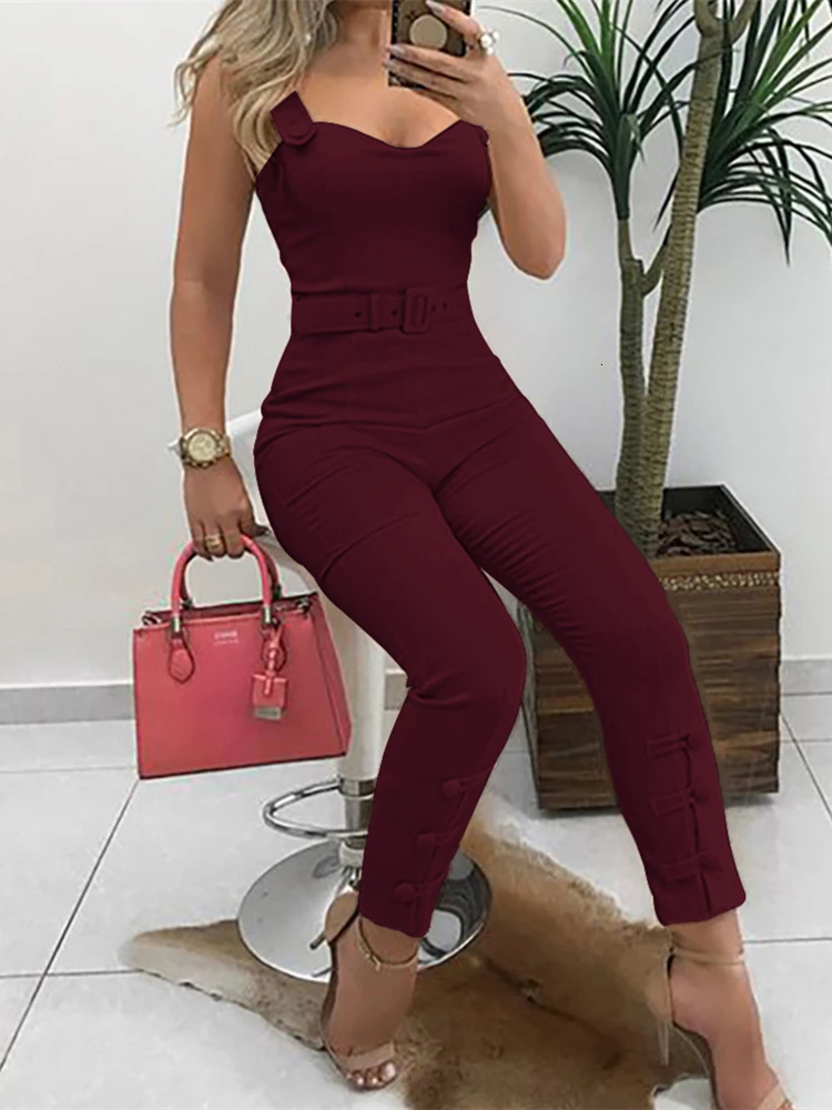 2019 Summer Elegant Leisure Overalls Skinny Slim V-Neck Sleeveless Casual Romper Thin Strap Button Rompers Womens Jumpsuit