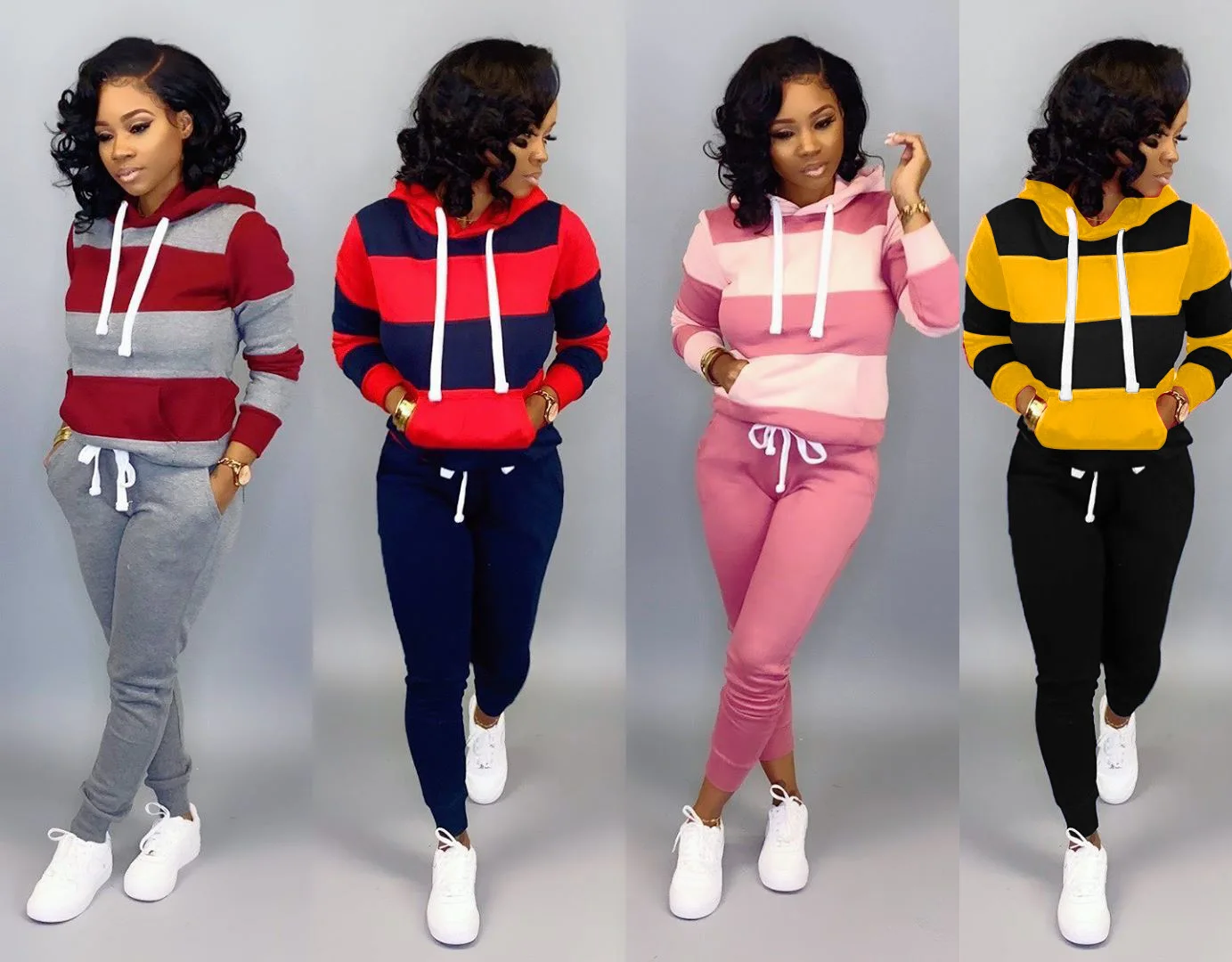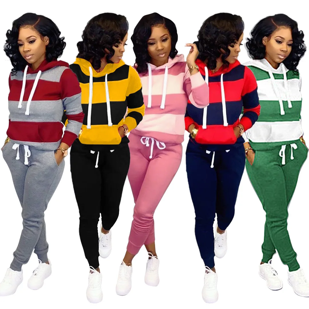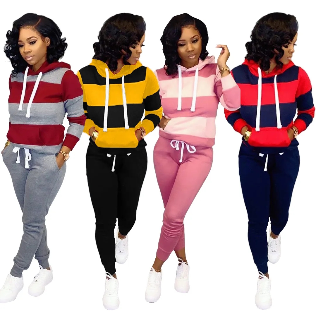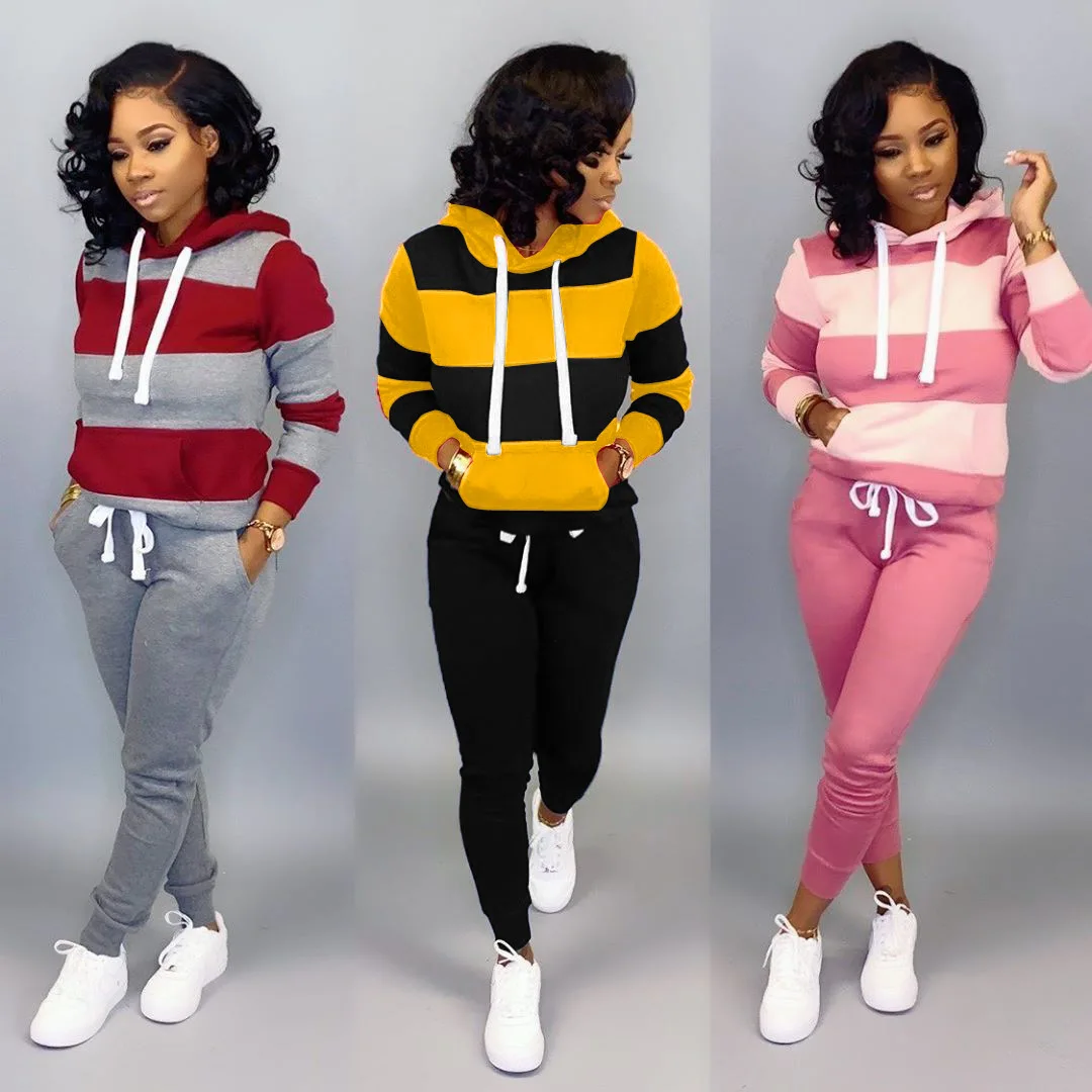 2019 Women Winter Women’s set Tracksuit Full Sleeve Hoodied Sweatshirt Pockets Pants Suit Two Piece Set Outfits sweatsuit