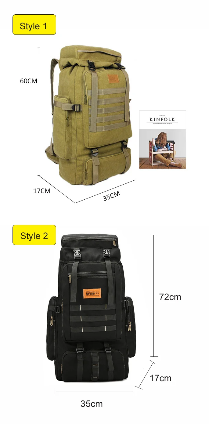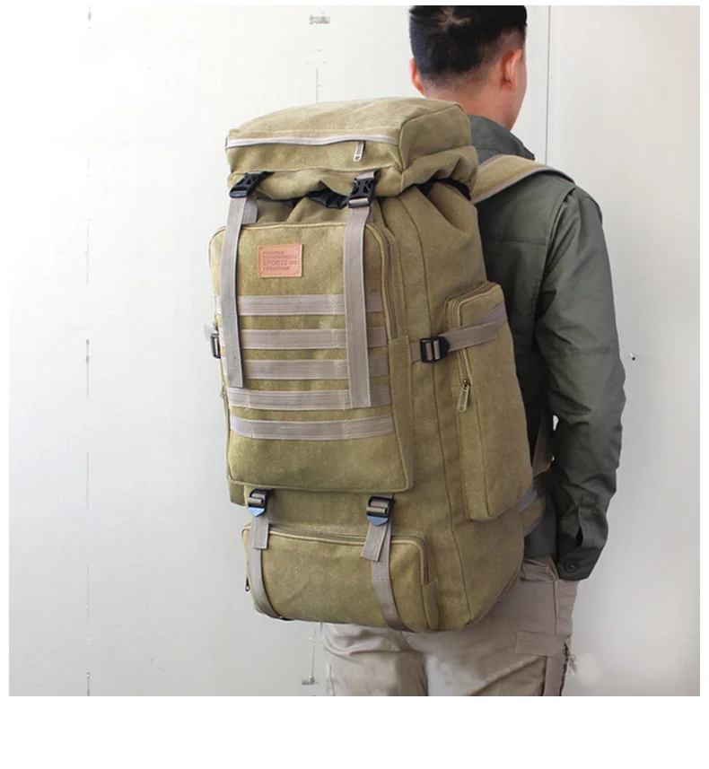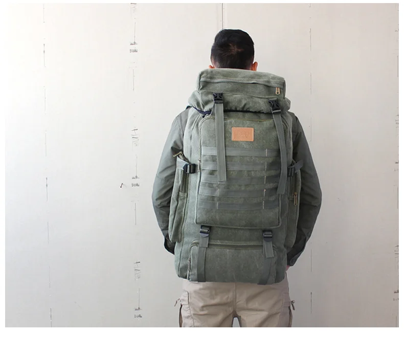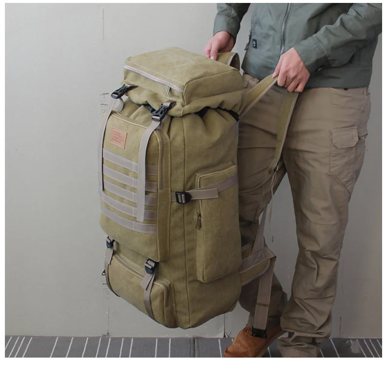 60L Large Military Bag Canvas Backpack Tactical Bags Camping Hiking Rucksack Army Mochila Tactica Travel Molle Men Outdoor XA84D