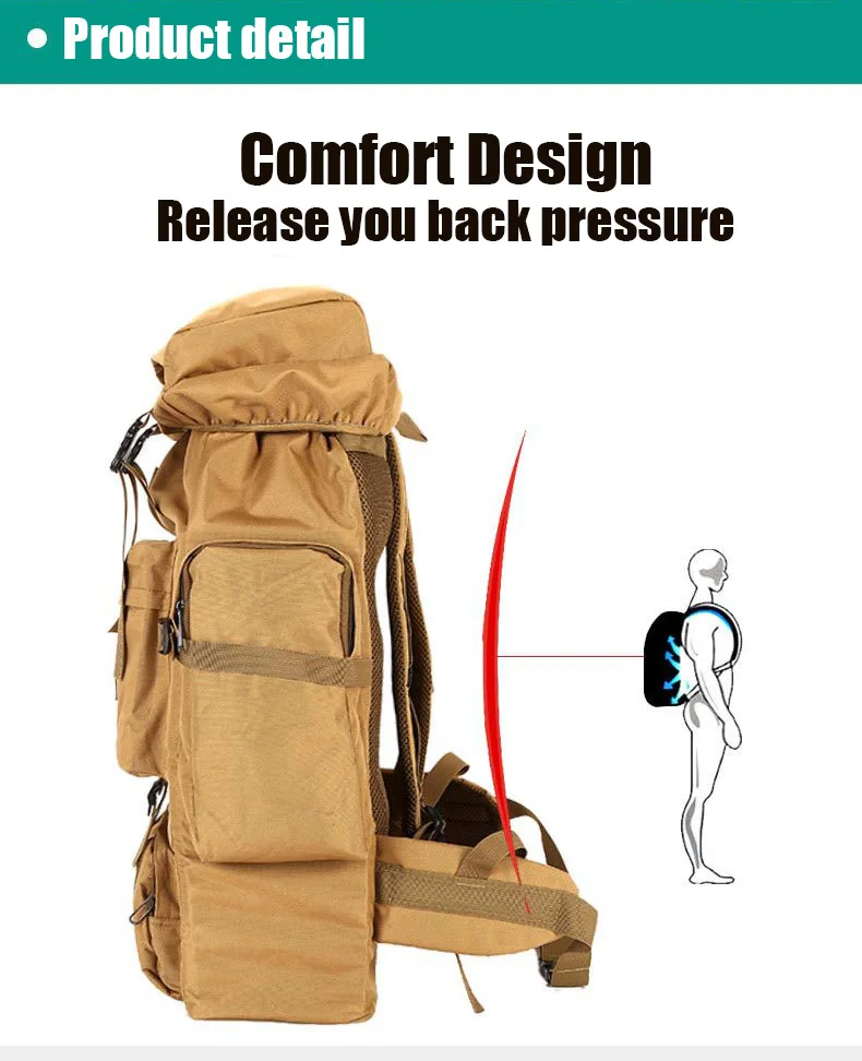 – 70L Large capacity, suitable for outdoor sports such as camping, hiking, trekking, etc.