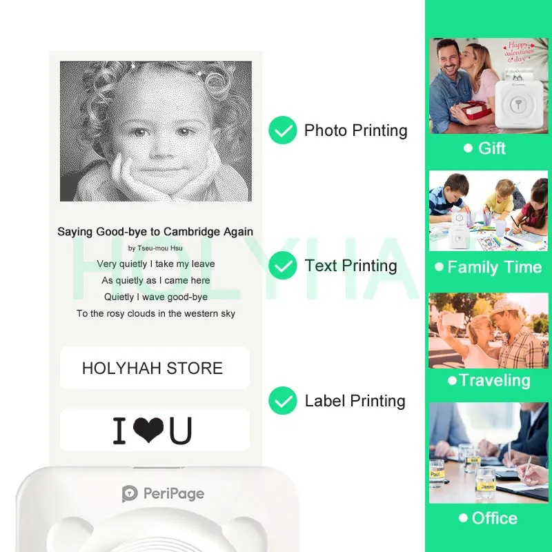 It can print photos, memorandum and records, the APP offers a variety of fonts and themes, makes your photo stylish