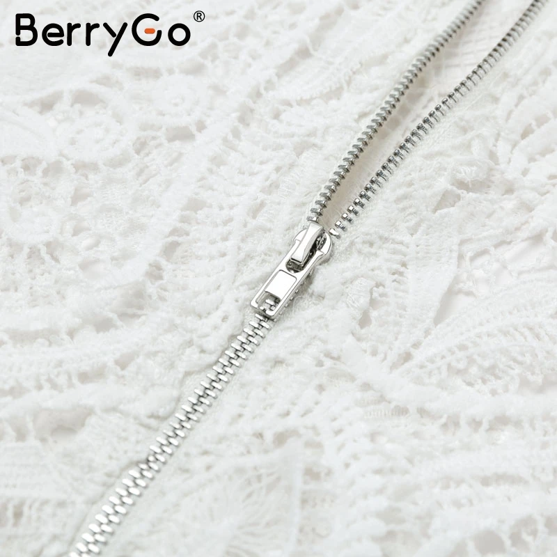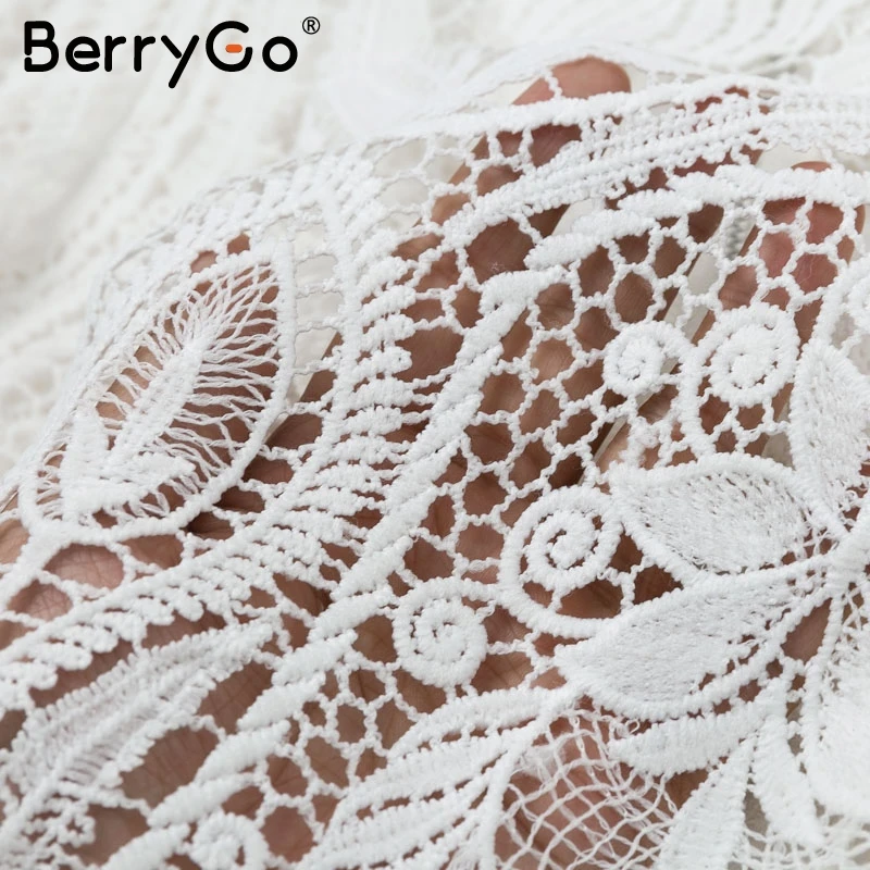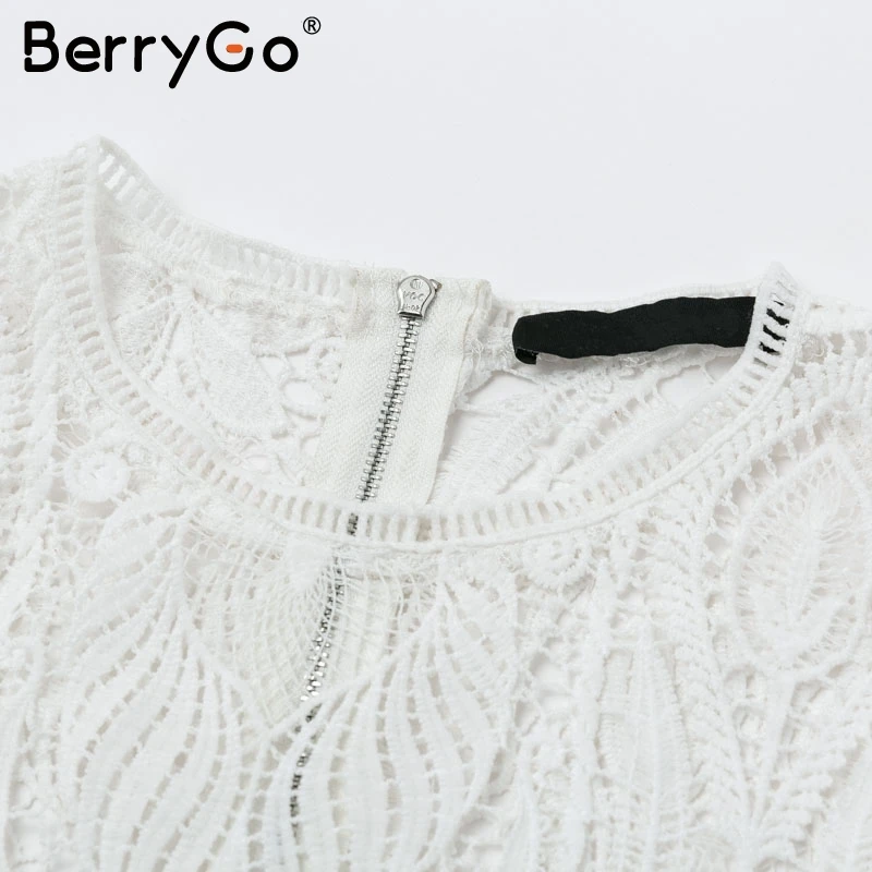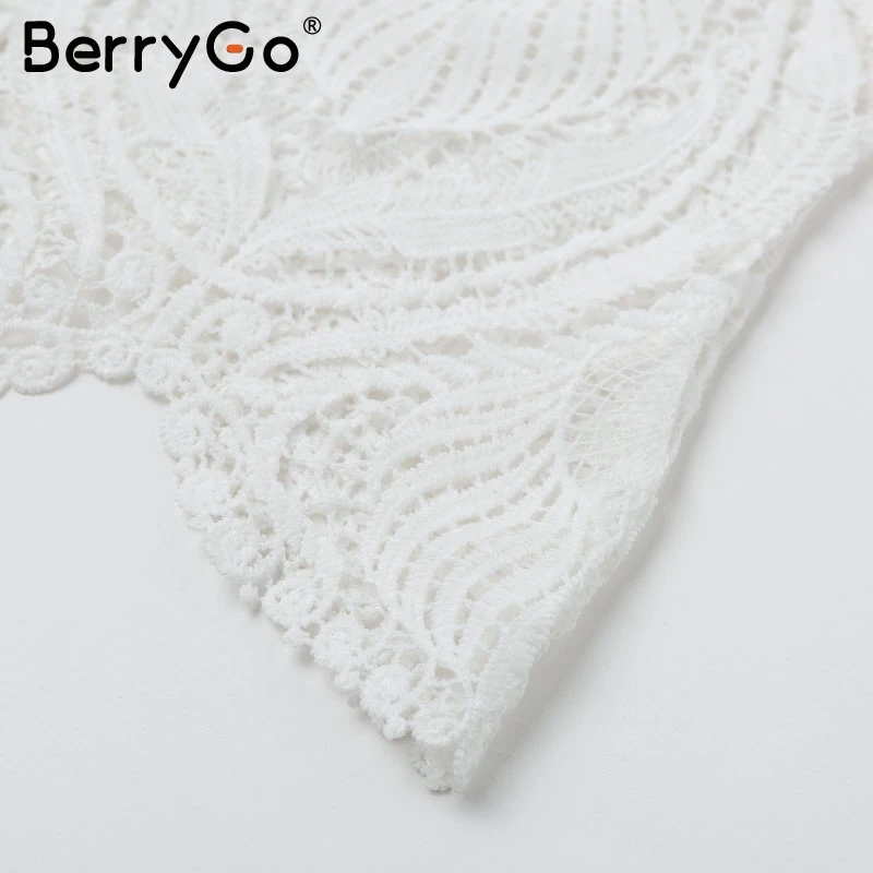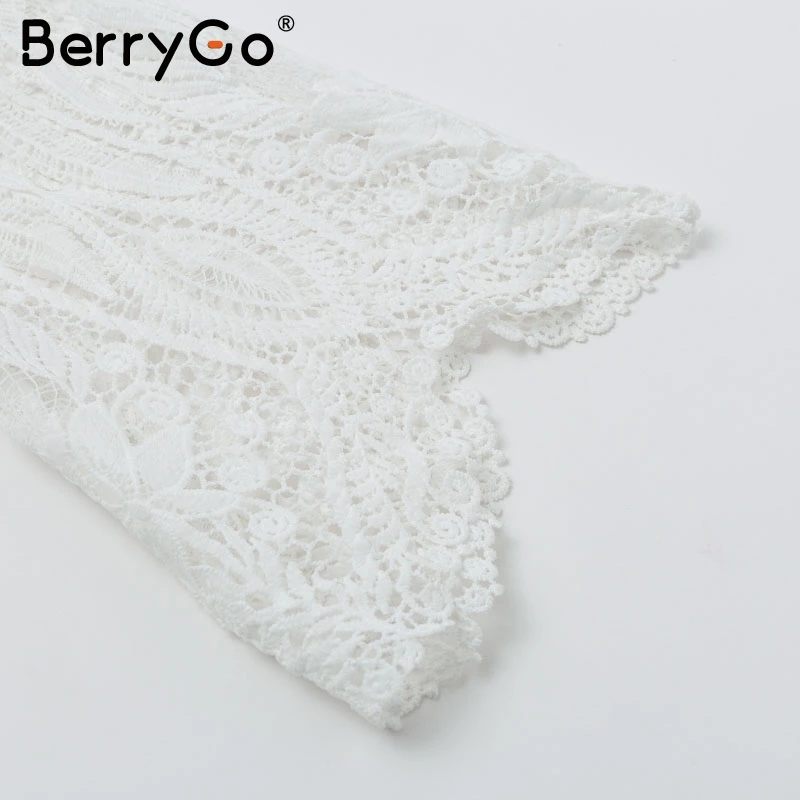BerryGo Sexy mesh lace embroidery women blouse Elegant hollow out flare sleeve female tops Party club transparent ladies shirts