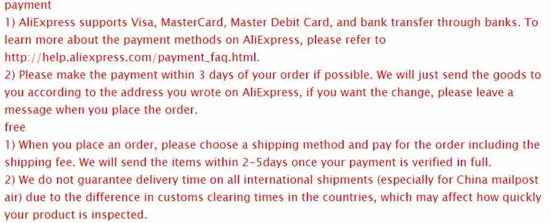 • If you did not receive the product within the guaranteed time( 45 days not including 2-5 day processing) you can request a refund or a reshipment.