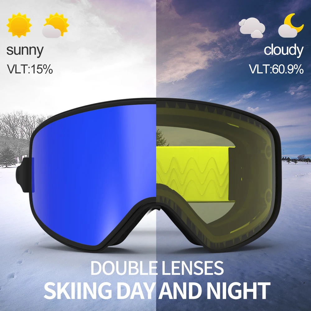2018 Upgrade Version 2 in 1 Design, come with VLT60.9% yellow lens, dual-use Lens which can Ski All Day. 2s Quick-change lens.