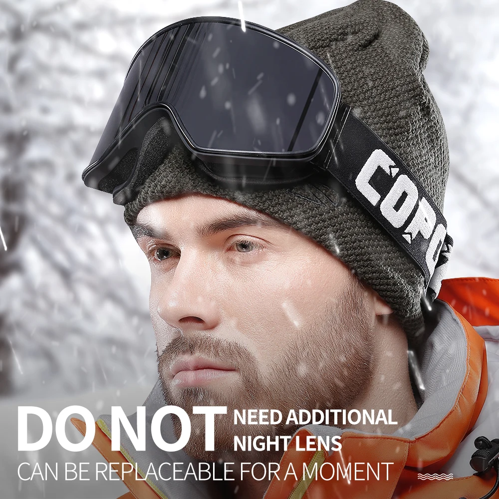 COPOZZ Dual-use Ski Goggles with Magnetic Quick-change 2 in 1 Lens Anti-fog UV400 Night Skiing Snowboard Glasses for Men & Women