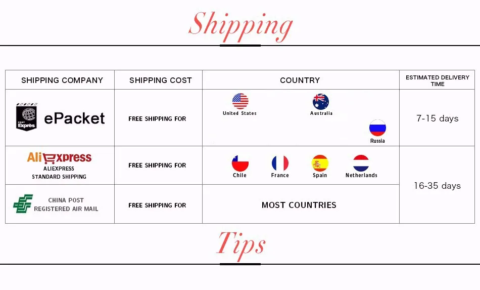 1. WORLDWIDE SHIPPING. (Except some countries and APO/FPO)