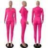 Fashion Hooded Two Piece Set Jogging Femme Zipper Top + Pants Suit Sportwear Tracksuit Women Outfits Solid 7 Color Plus Size