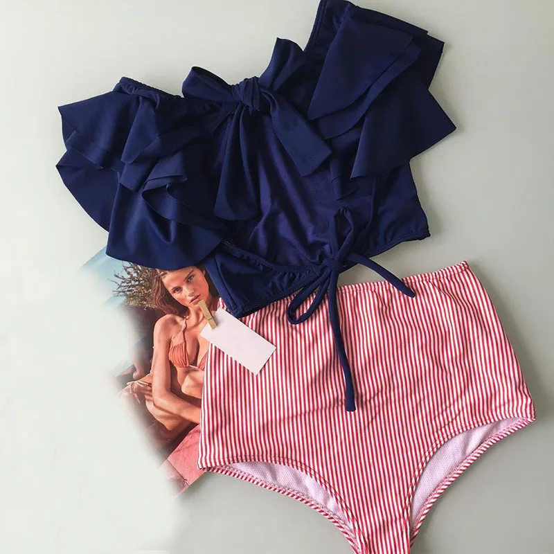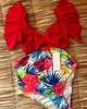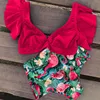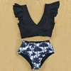 Floral Ruffled Hem Bikini Set Women Flora V-neck High-waisted Two Piece Swimsuit 2018 Girl Beach Bathing Suit Swimwear Biquinis
