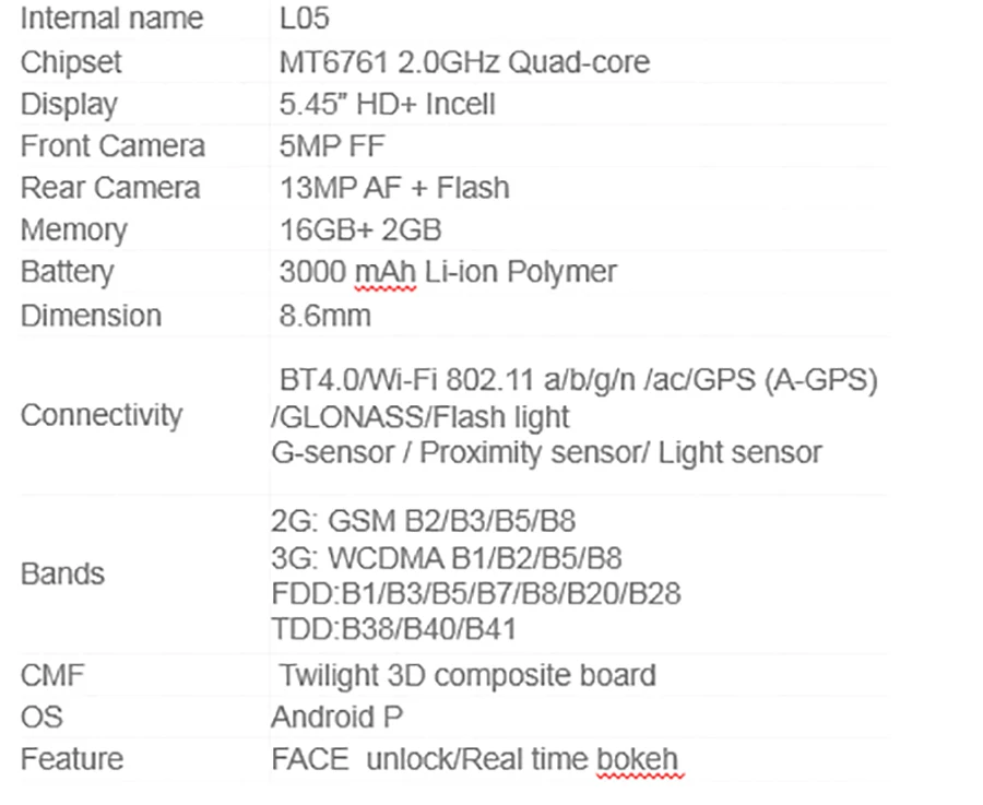 MT6761 2.0GHz Quad-core |