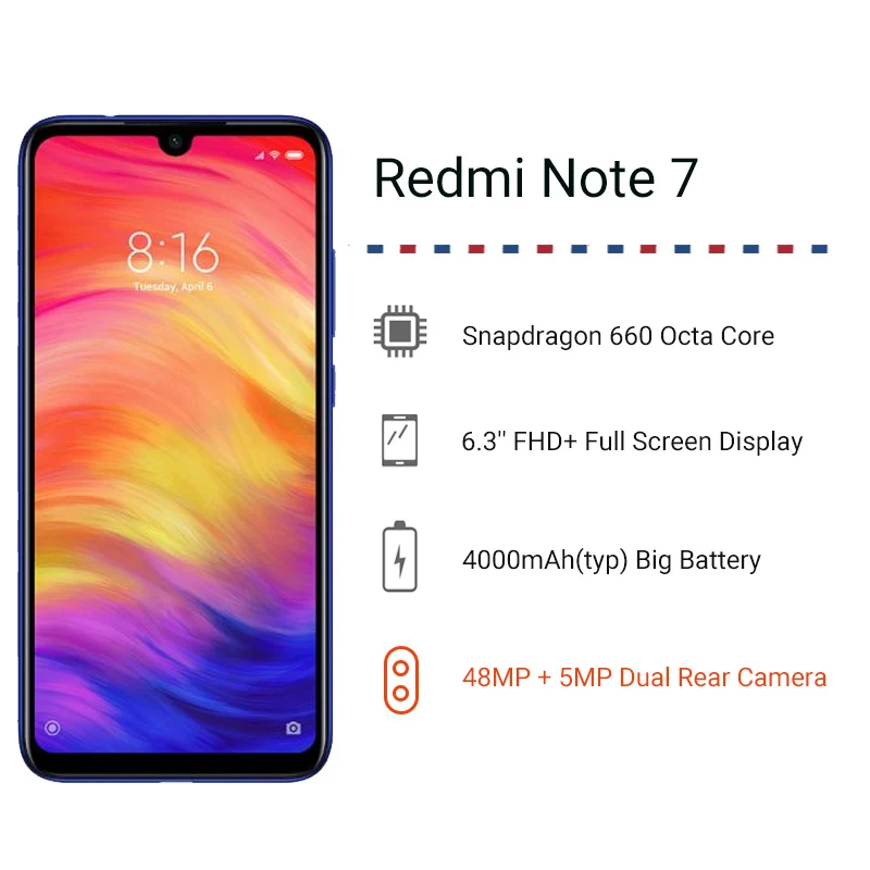 | Brand: Xiaomi Redmi Note 7 Global Version | CPU: Snapdragon 660 AIE Octa Core |