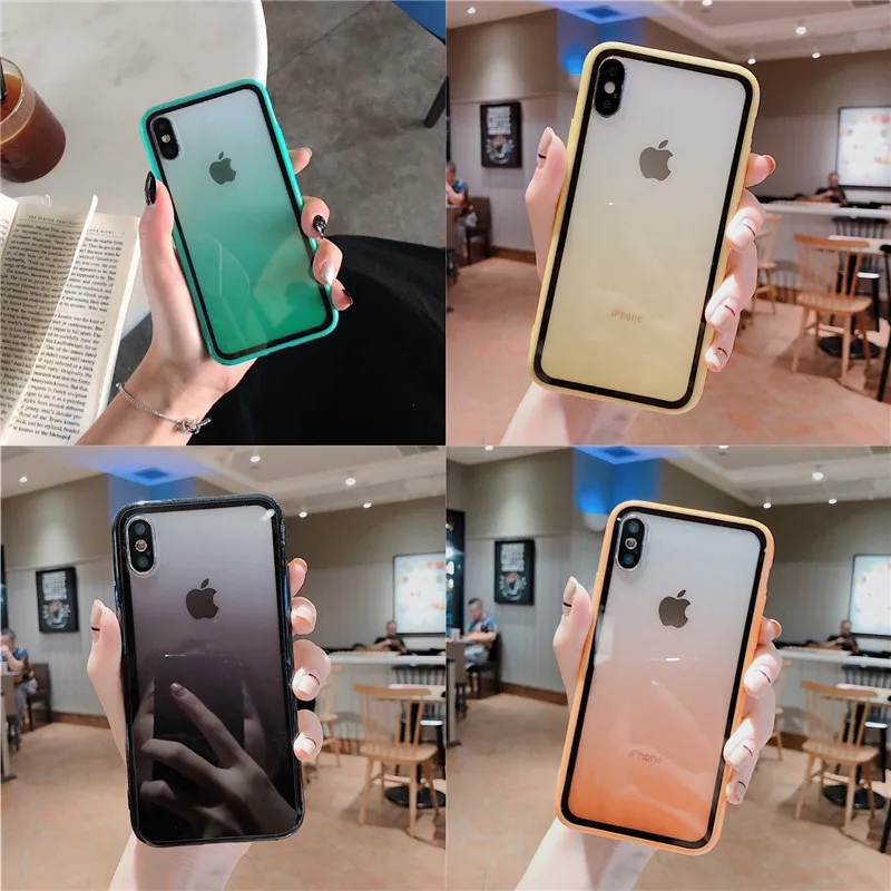 Gradient Candy Multicolor Bumper Transparent Phone Case For iPhone 7 8 6 6S Plus X XS 11 pro Max XR Clear protection Back Cover