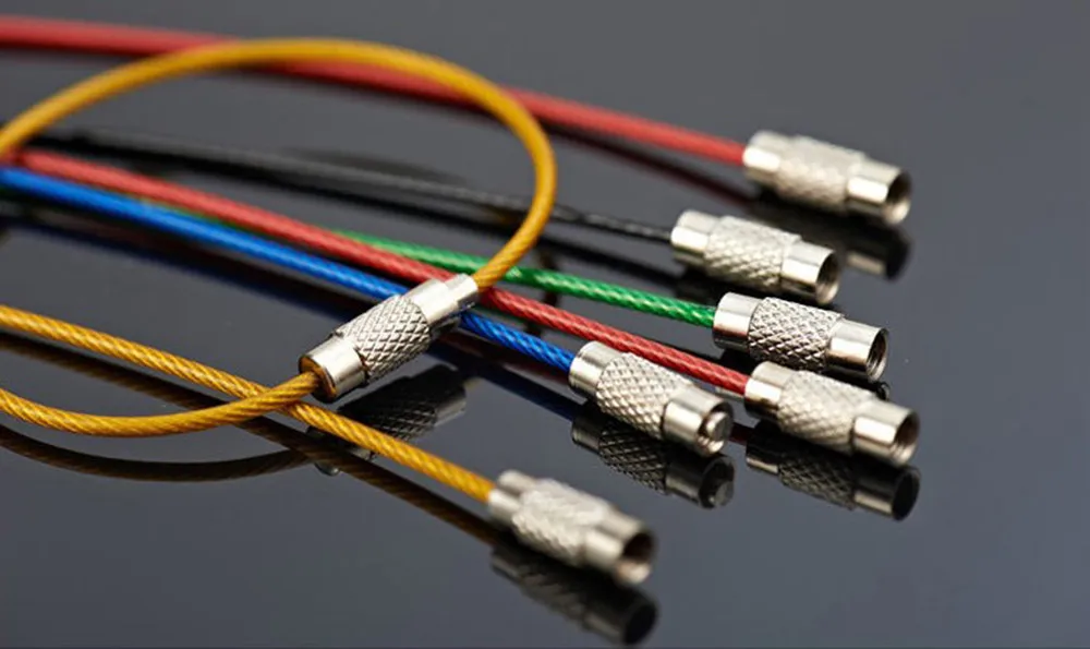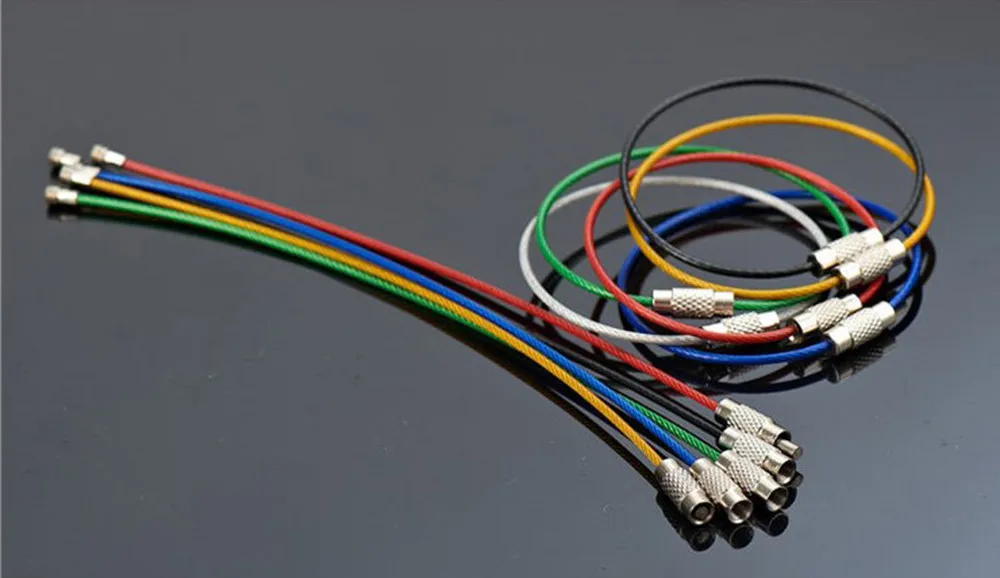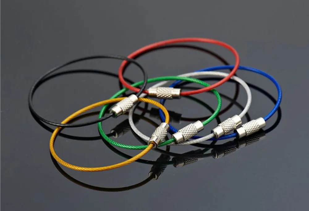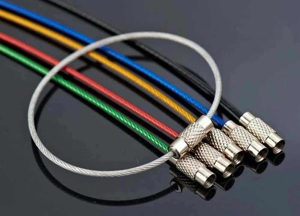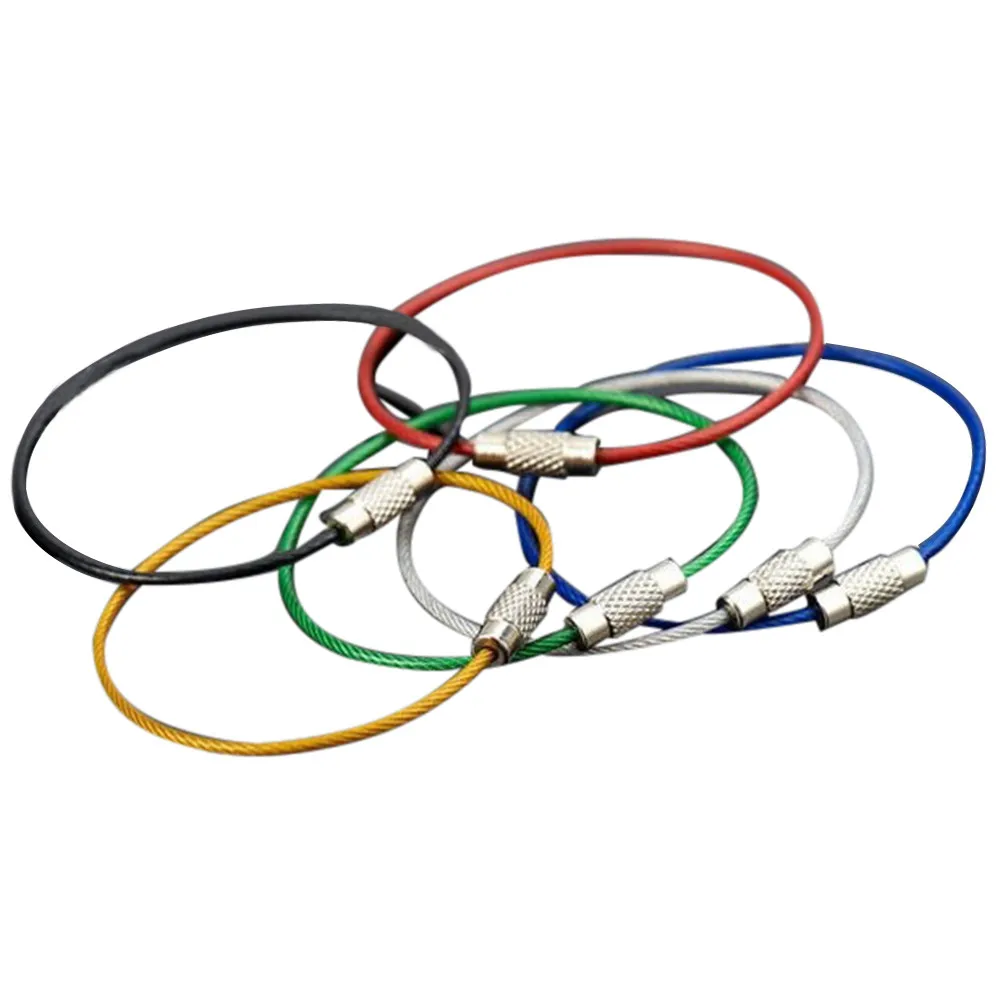 HOT Practical 6Pcs Stainless Steel Wire Rope Key Chains Keyrings Flexible Colourful Plastic Coated Hiking EDC camping equipment