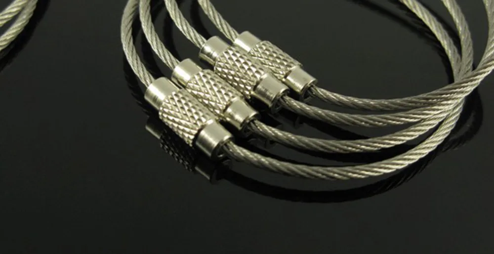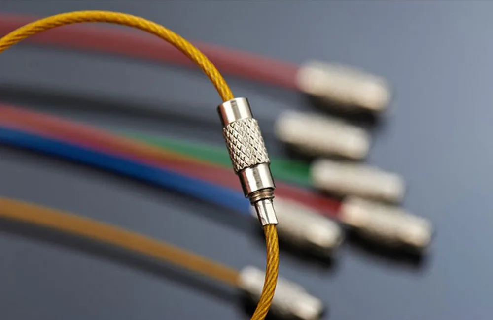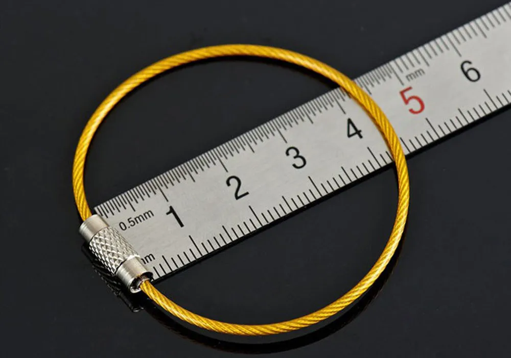 6 Stainless Steel Wire Rope Key Chains Keyrings Colourful Plastic Coated Hiking