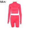 Kliou New Female Fluorescence Fitness Two Pieces Sets 2019 Autumn Full Sleeve Zipper Turtleneck Tops And High Waist Shorts Suits