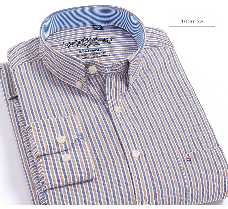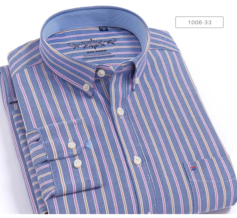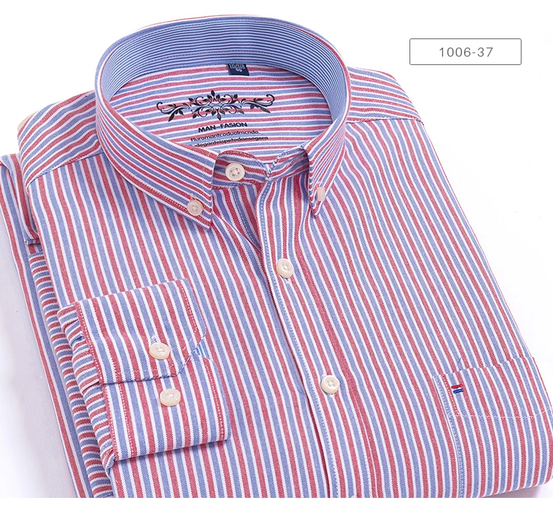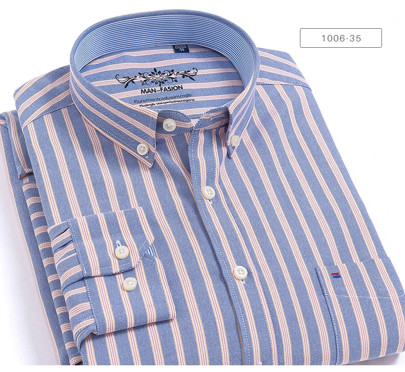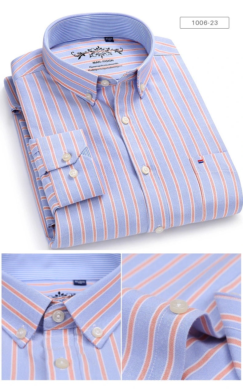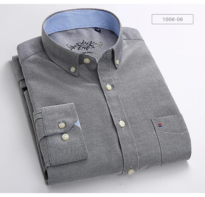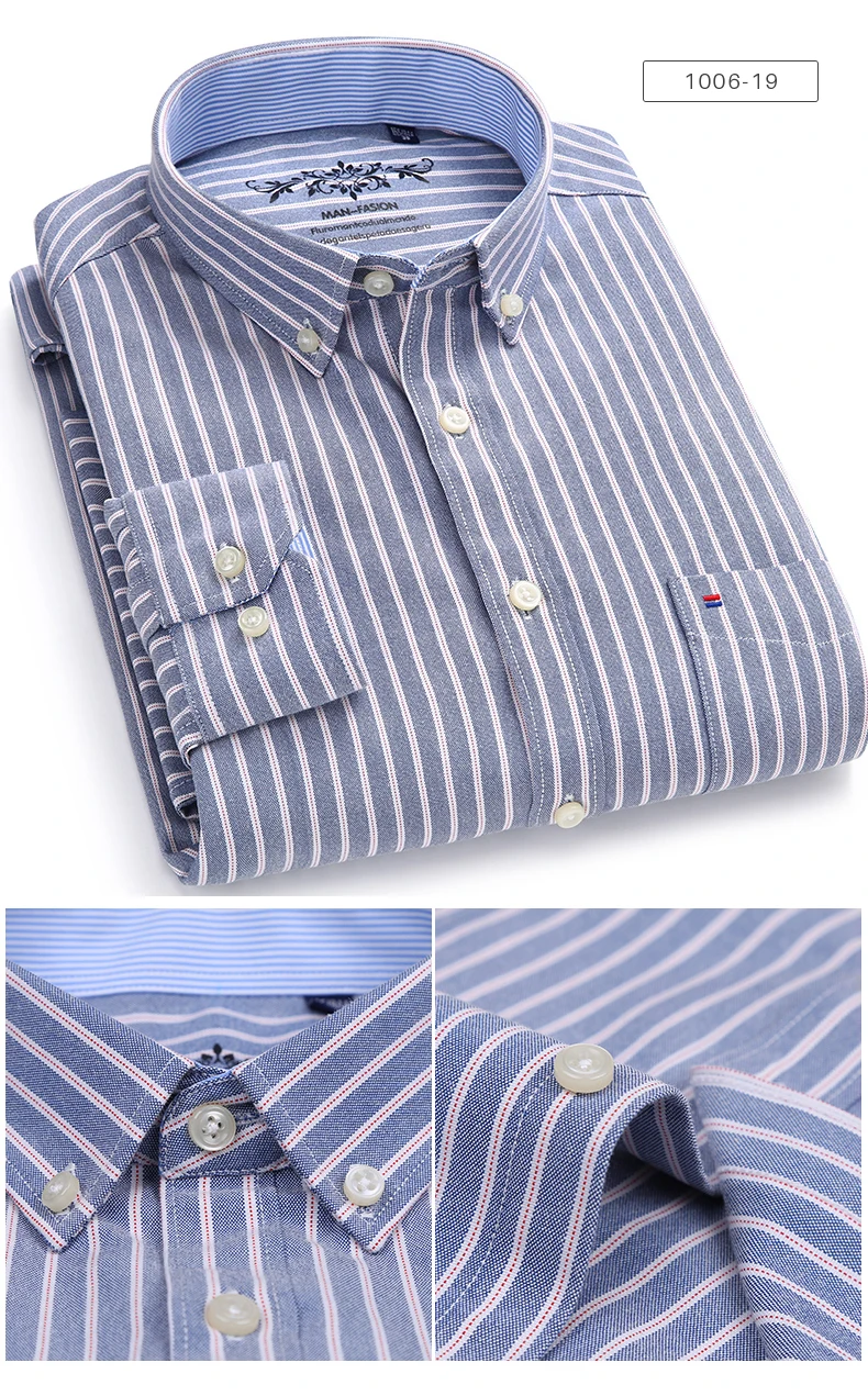 Men’s Plaid Checked Oxford Button-down Shirt Chest Pocket Smart Casual Classic Contrast Standard-fit Long Sleeve Dress Shirts