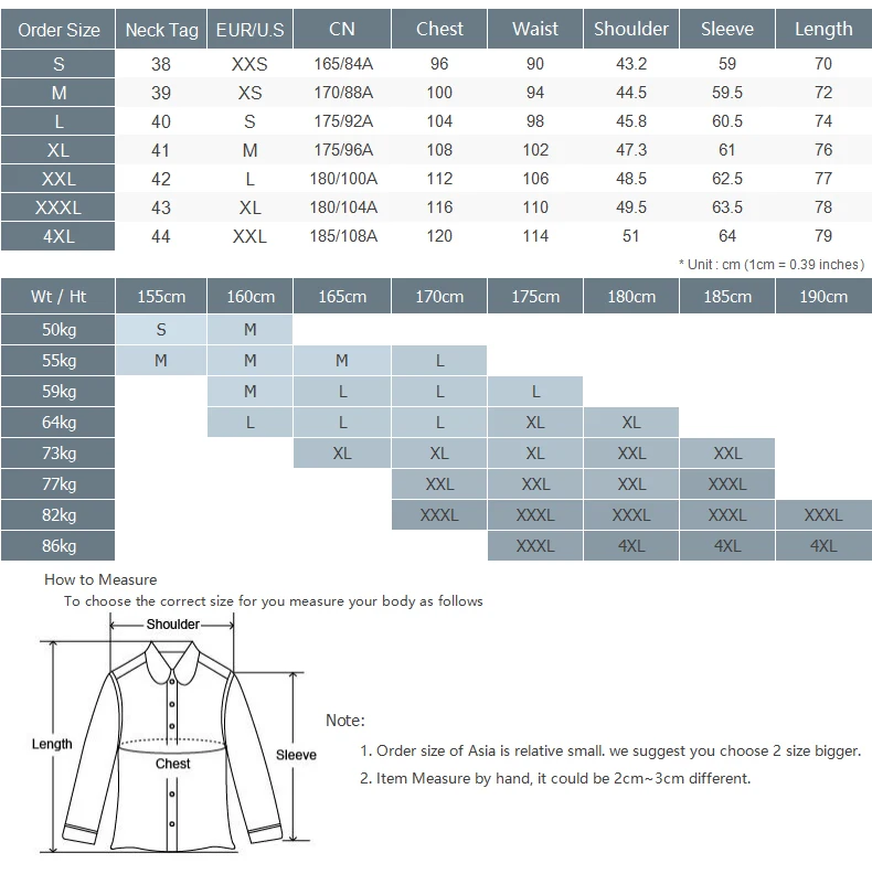 SizeChest Width(cm)Body Length(cm)Cross Shoulder(cm)Waist Width(cm)Sleeve Length(cm)