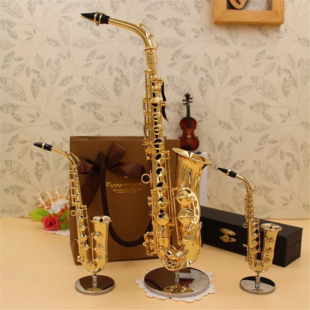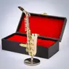 Mini Saxophone Model Professional Musical Instruments Copper Brooch Miniature Desk Decor Display Sax Alto With Box + Bracket