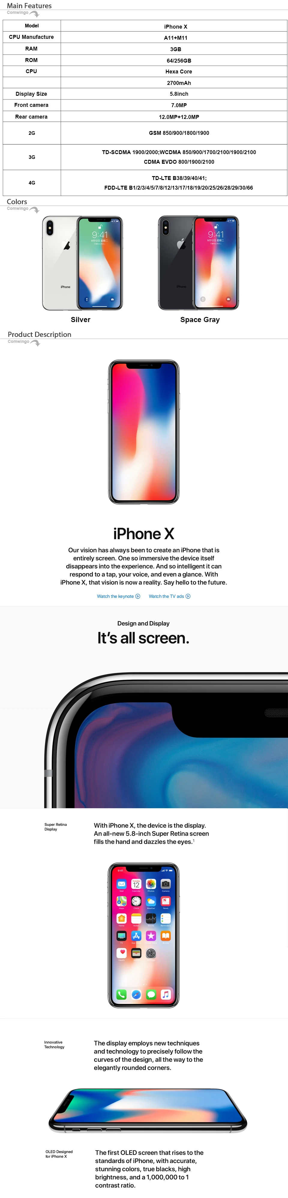 Original Apple iPhone X Face ID 3GB RAM 64GB/256GB ROM 5.8 inch 12MP Hexa Core iOS A11 Dual Back Camera 4G LTE iphonex