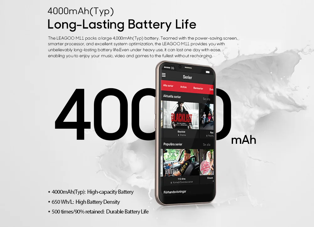 Battery:4000mAh Display: 6.18'' IPS Screen