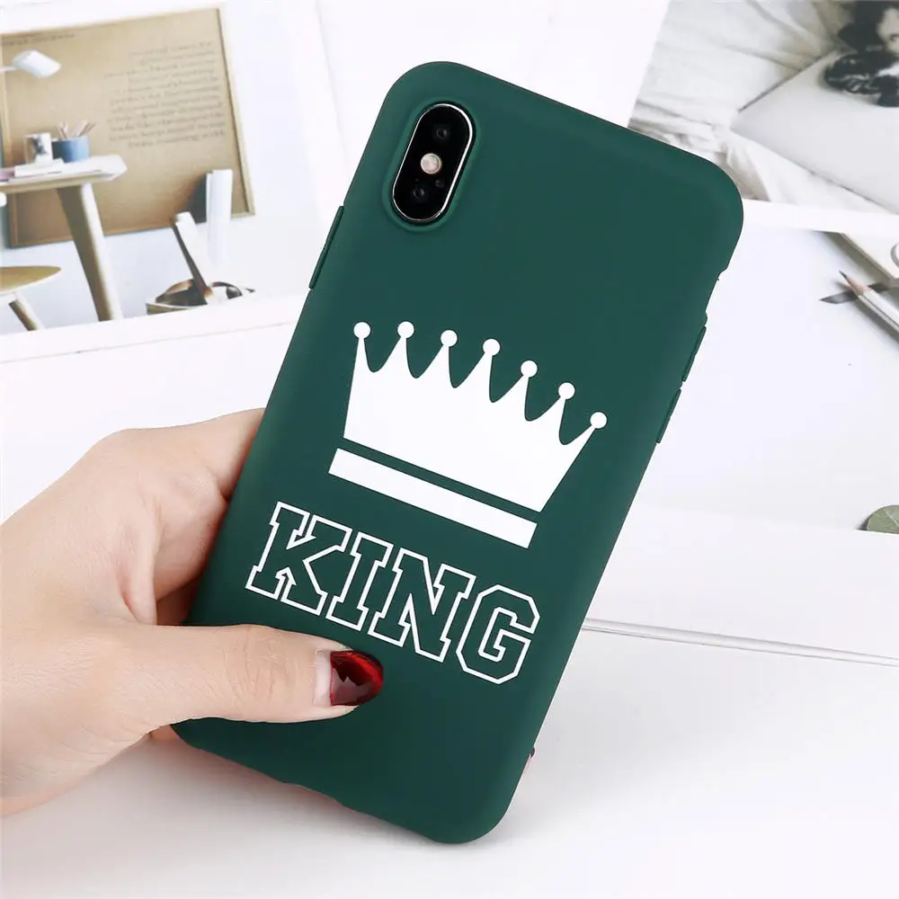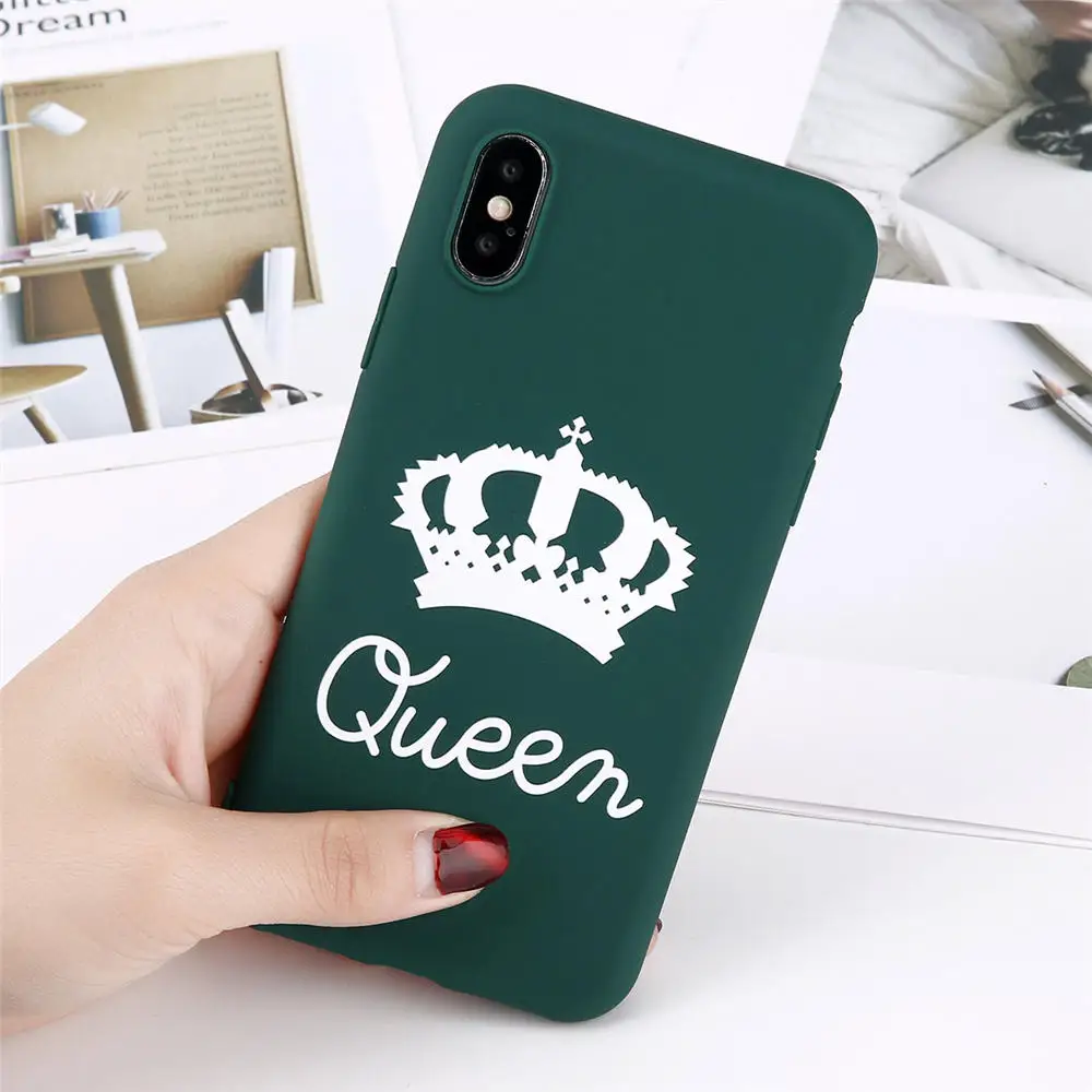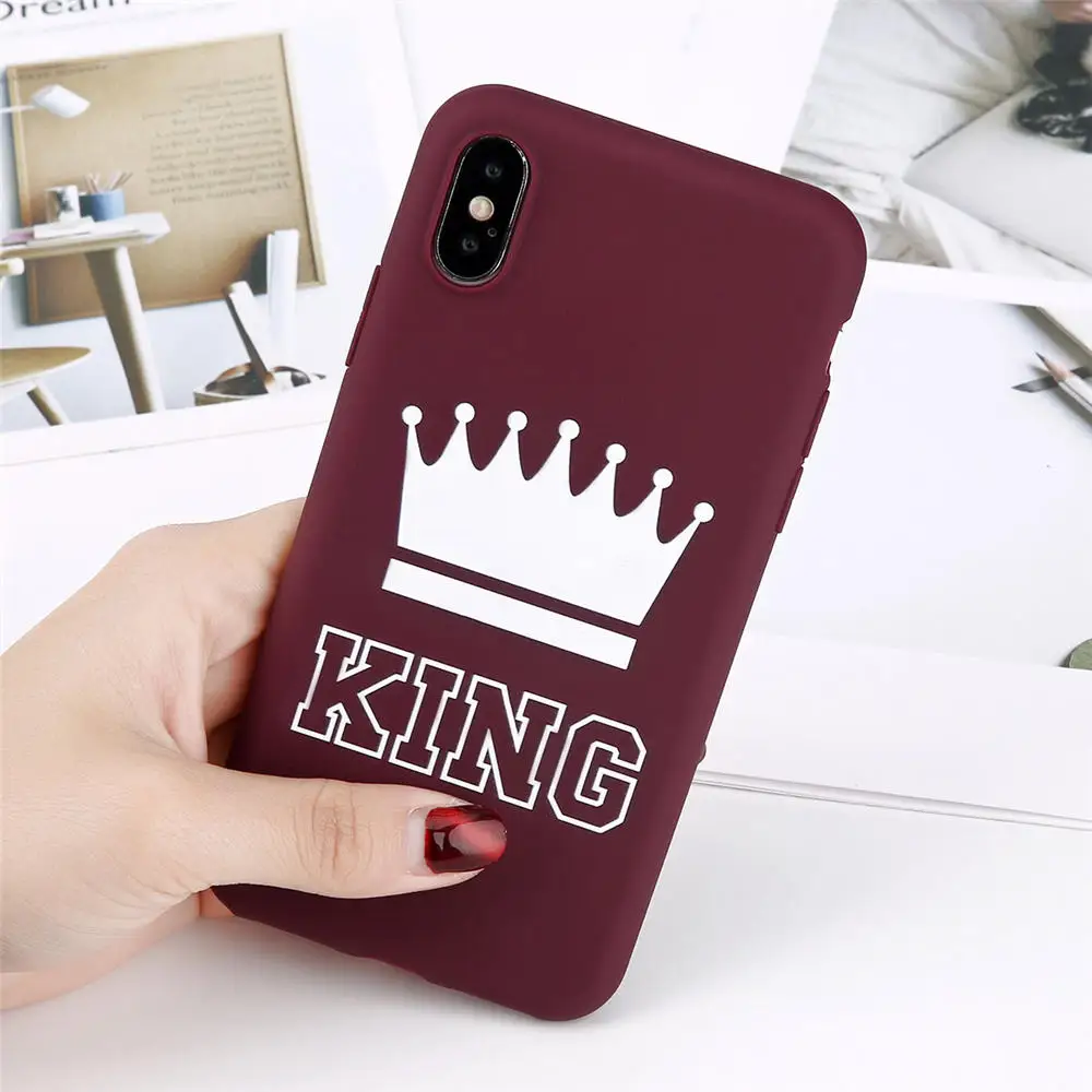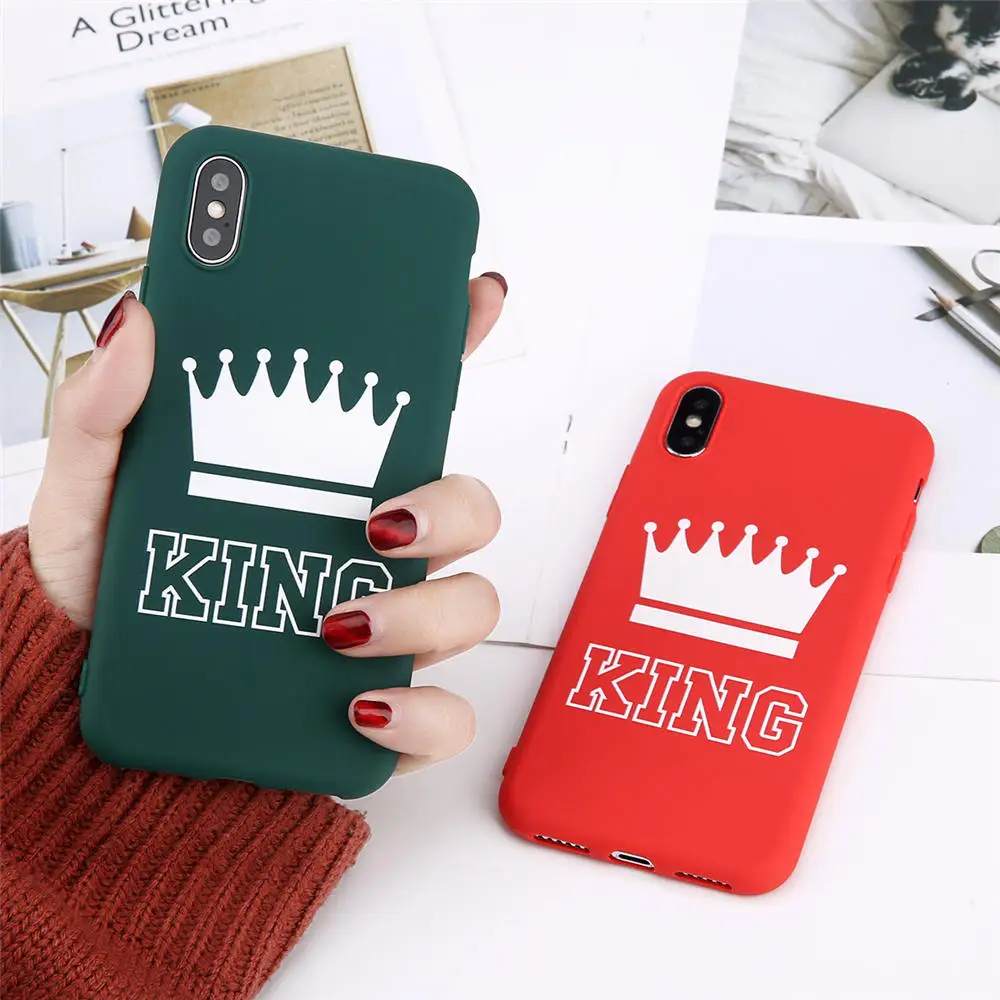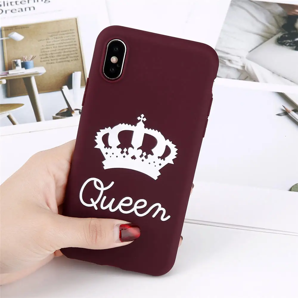 Cartoon Crown Letter King Queen Printed Capa Fundas Coque Shell