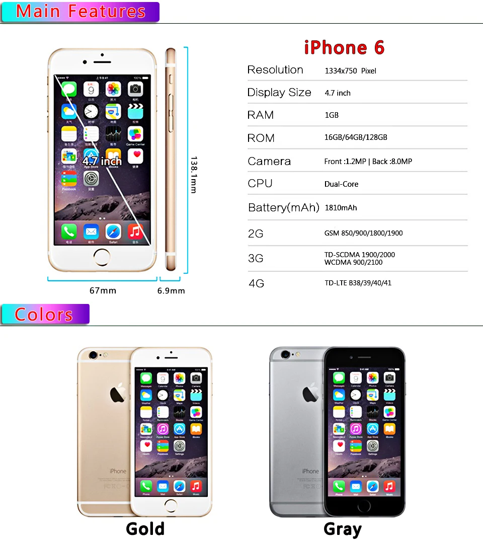 99% New (Garde A), Unlocked Used Cell Phone Original Apple iPhone 6