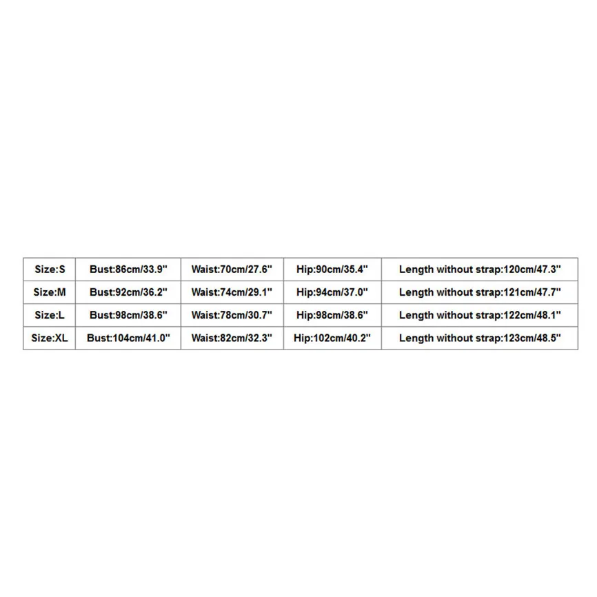 Size:XL Bust:104cm/41.0″ Waist:82cm/32.3″ Hip:102cm/40.2″ Length without strap:123cm/48.5″