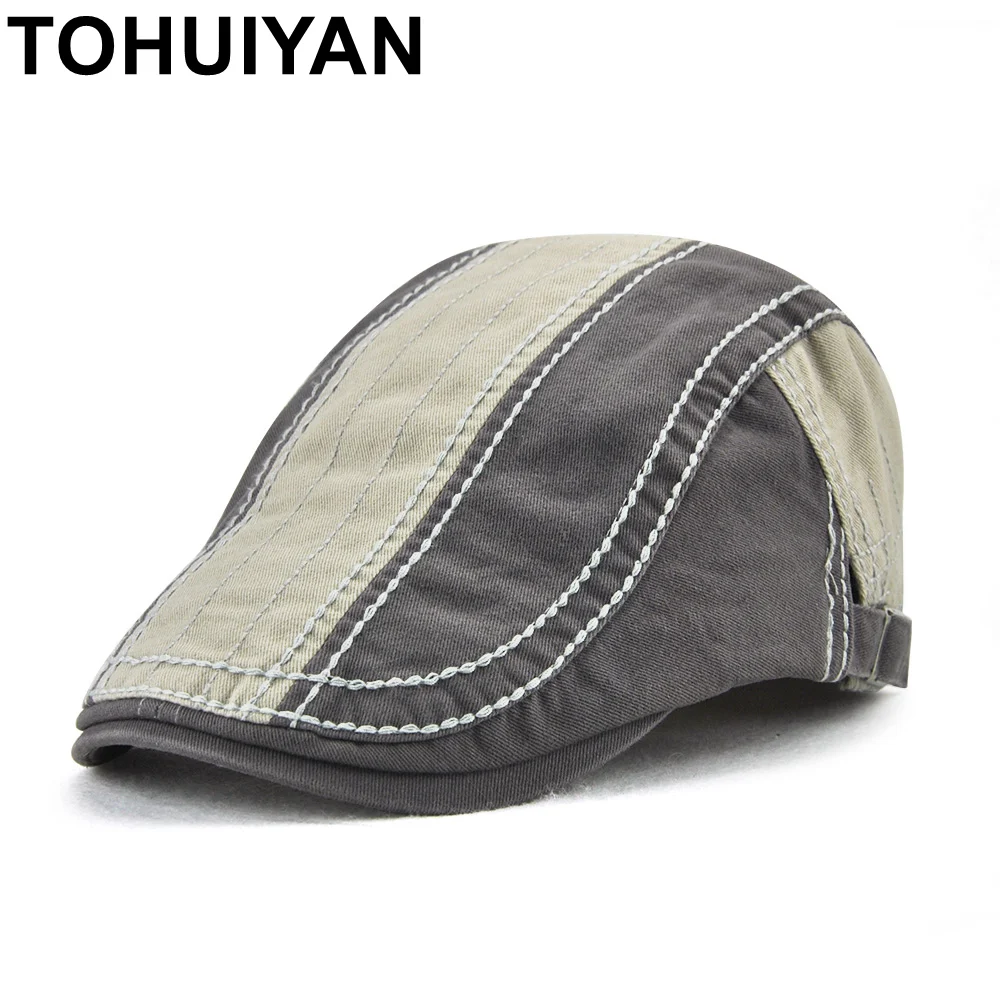 TOHUIYAN Retro Beret Cap For Men Casual Visor Peaked Hat Gorras Planas Flat Caps Womens Soft Cotton Patchwork Boina Newsboy Hats