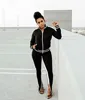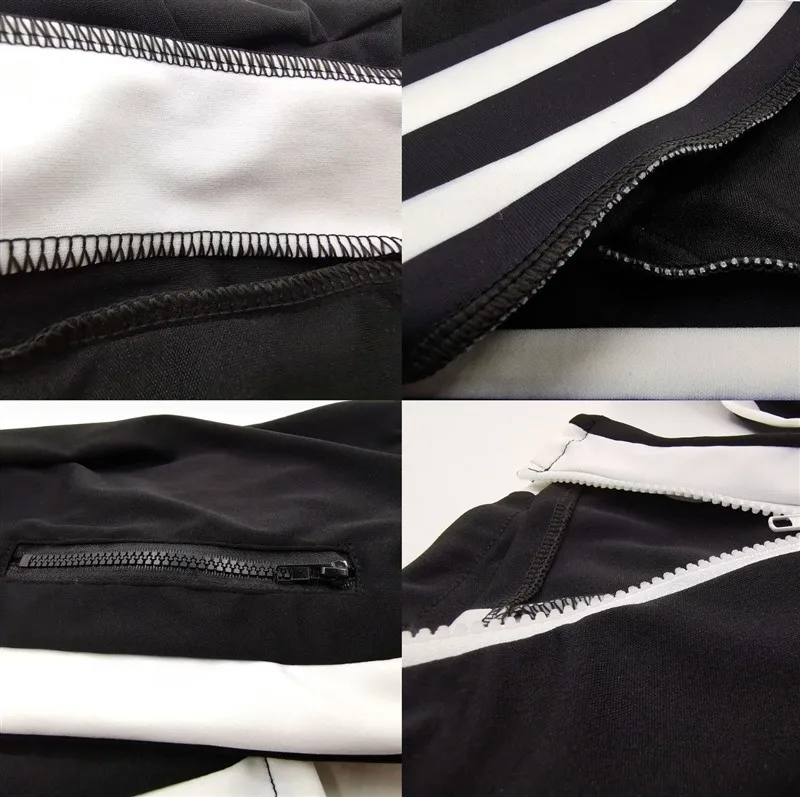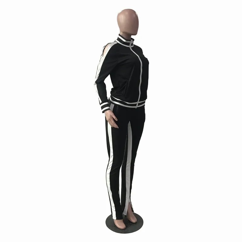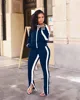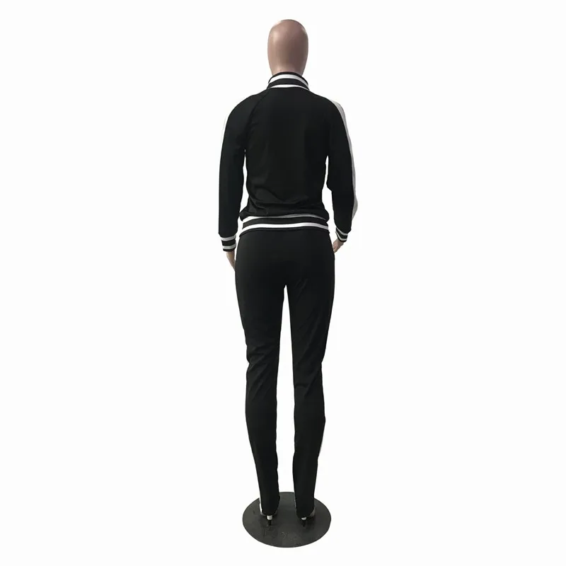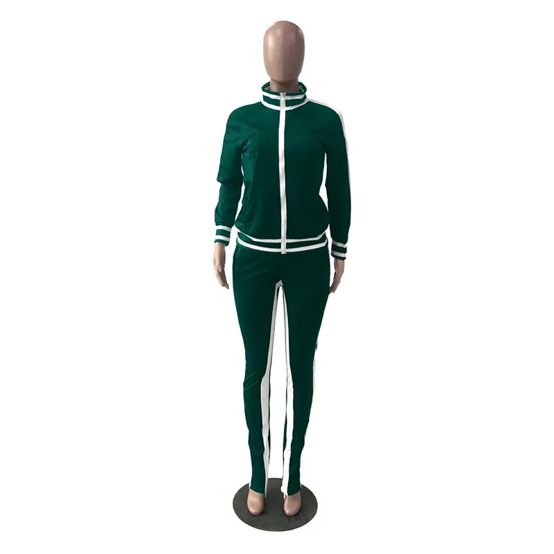 UIDEAZONE Women Sports Two Piece Set Turtleneck Zipper Jackets Elastic Waist Pants Striped Casual Ladies 2 Pieces Suits 2Pcs Set