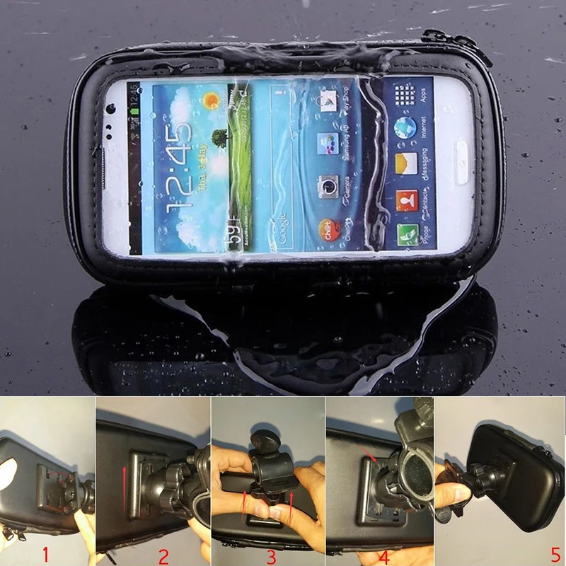Universal Waterproof Motorcycle Phone Holder Zipper Pocket Handlebar Phone Mount Stand Support Bag For Iphone X 8 7 6 Cellphone