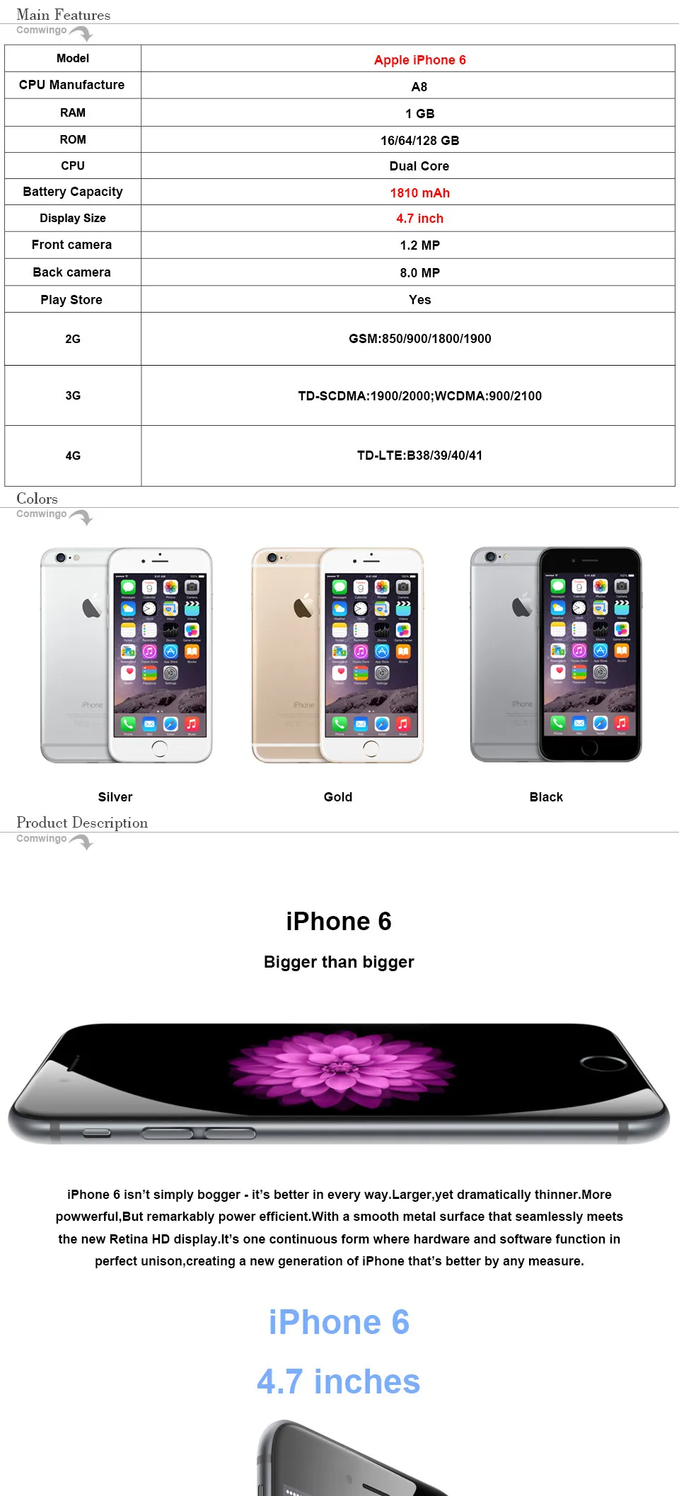 iPhone 6 : 4.7 inches