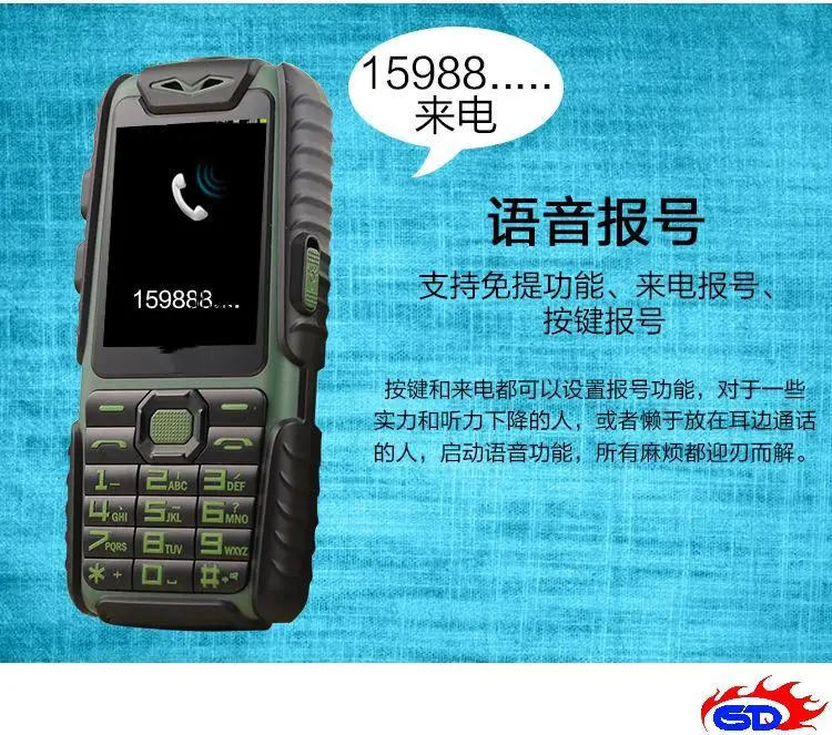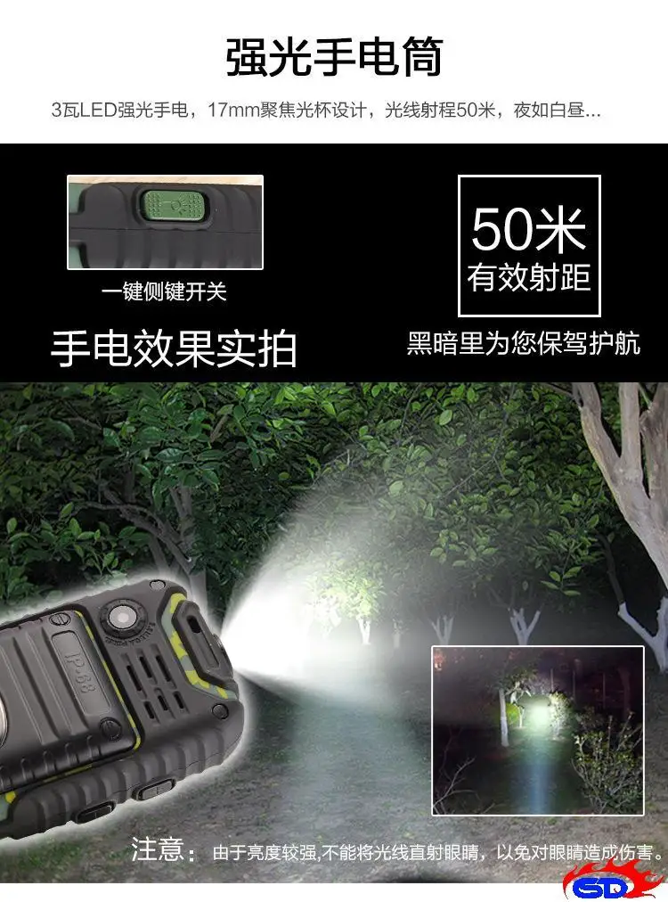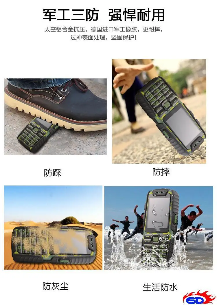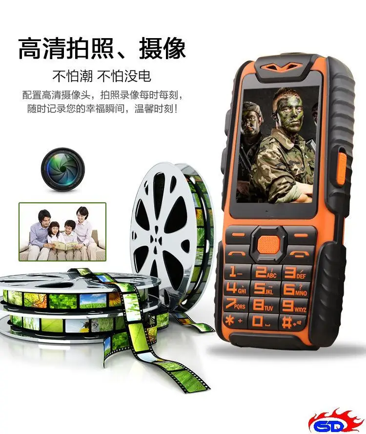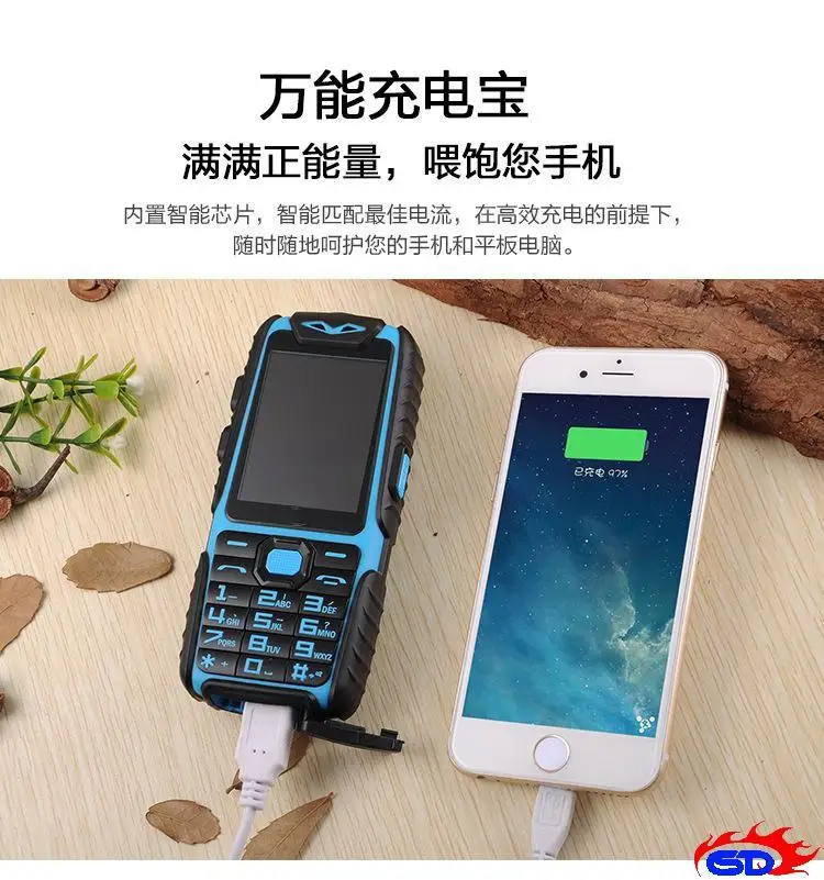 WaterProof A6 Power Bank Phone Shockproof Loud Speaker Strong Flashlight Dual SIM 2.4inch(Can ADD Rusian Keyboard)