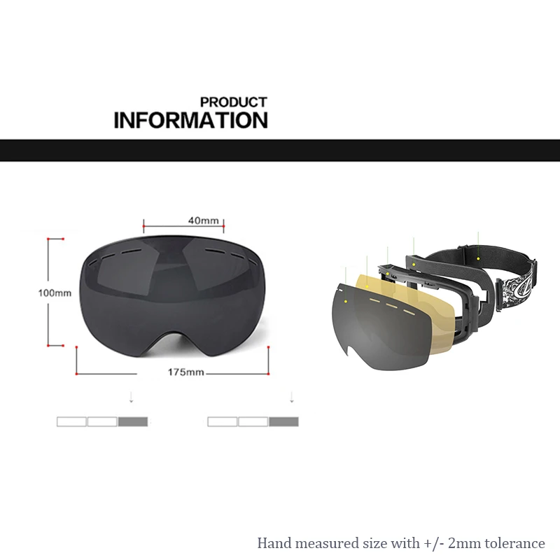 Winter Ski Goggles Snow Sports Snowboard Glasses Anti-fog UV Protection Eyewear Men Women Youth Snowmobile Skating Skiing Mask
