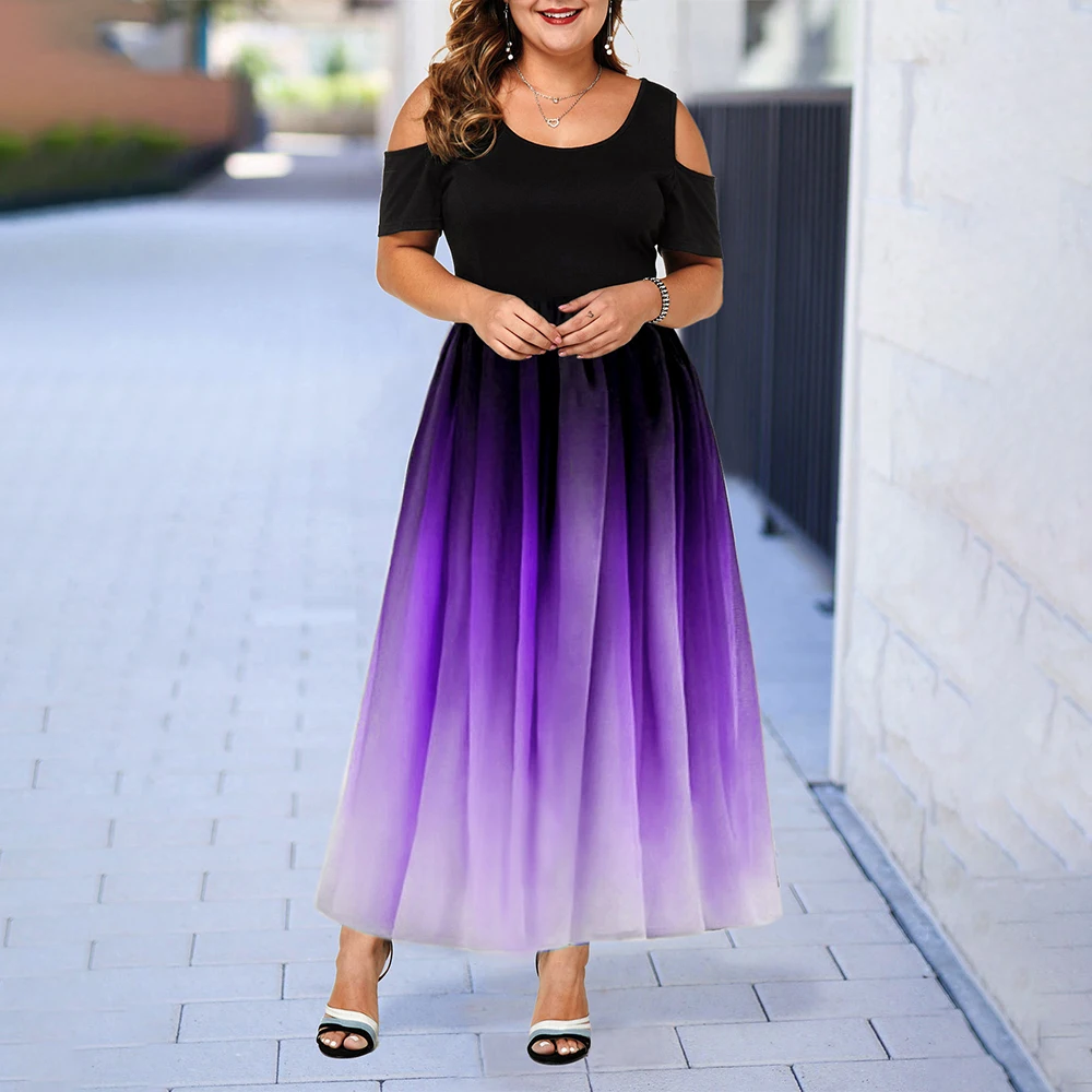 Women Dress Summer Plus Size Hollow Gradient Floor Length Maxi Dress Women Vintage Bohemian Dress Elegant Ladies vestido 6XL D40