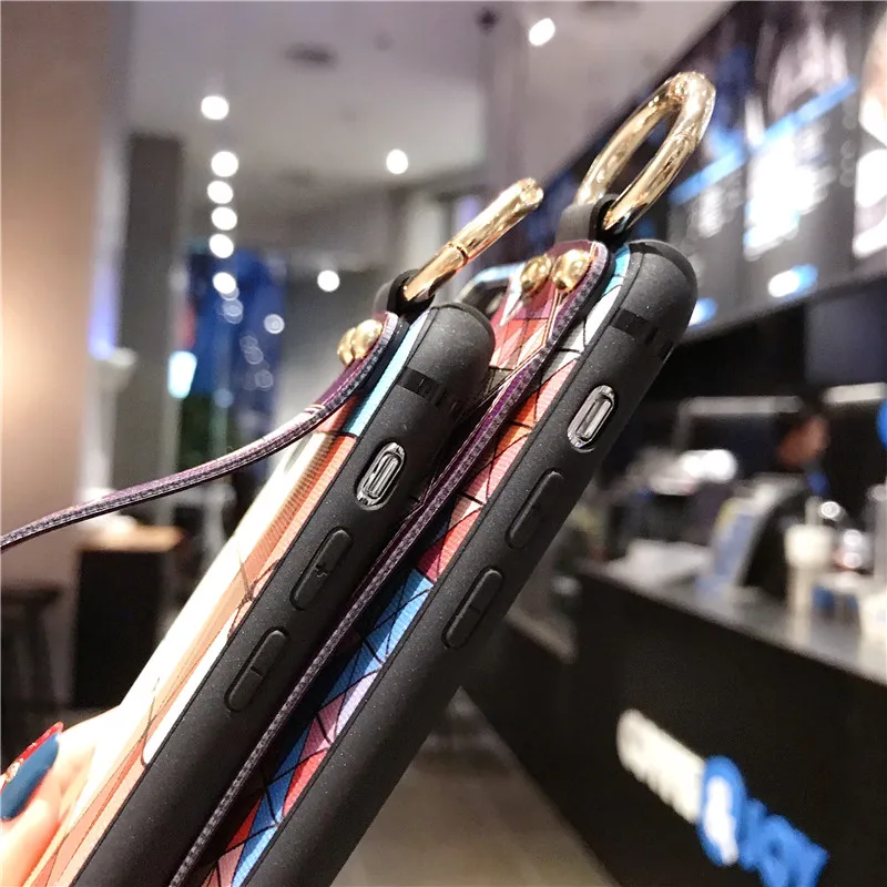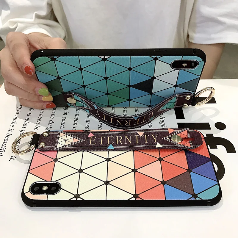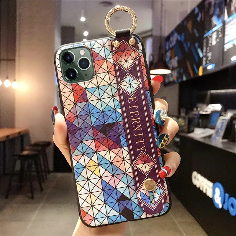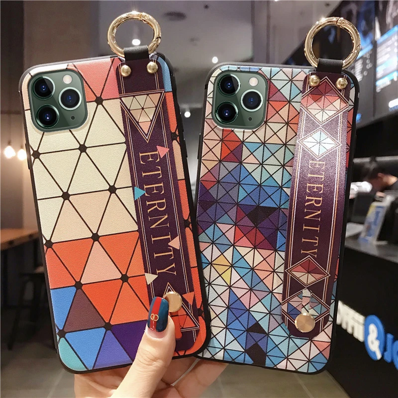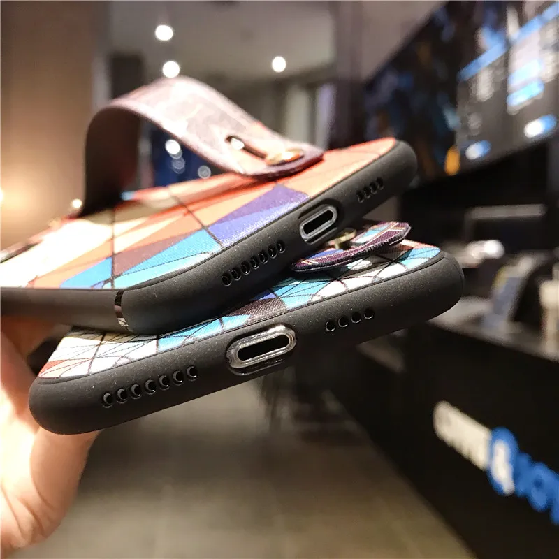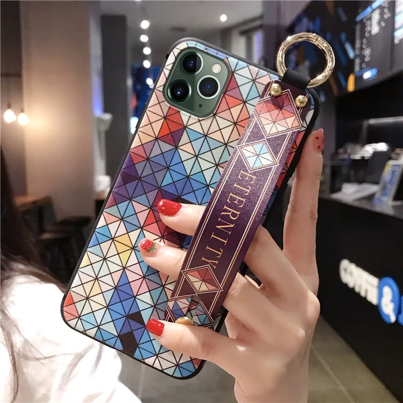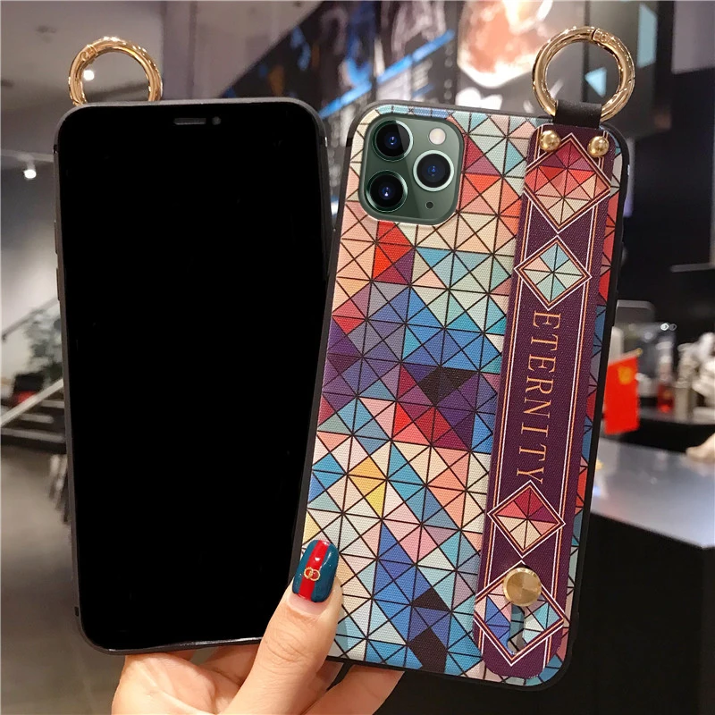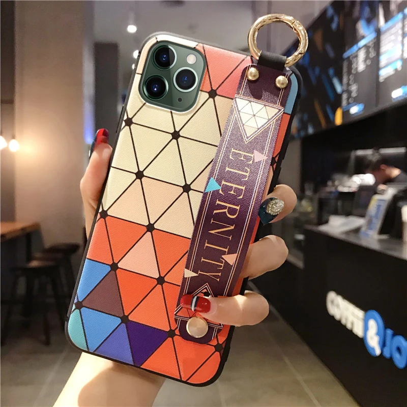 Luxury Armor Shockproof Wrist Band Case For iphone 7 8 6 6s plus Case For iphone 11 Pro Max X Xs max XR Grid Pattern Phone Holder Case Cover