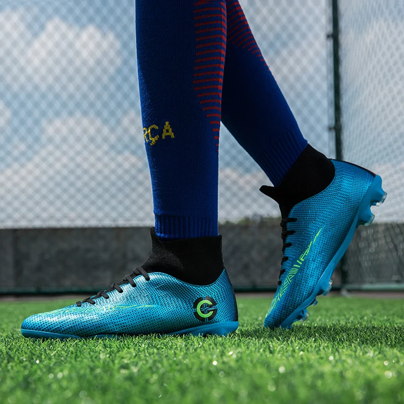 zeeohh Soccer Men’s High Top Training Ankle AG Sole Outdoor Cleats Football Shoes Spike High Ankle Men Football Boots Shoes M
